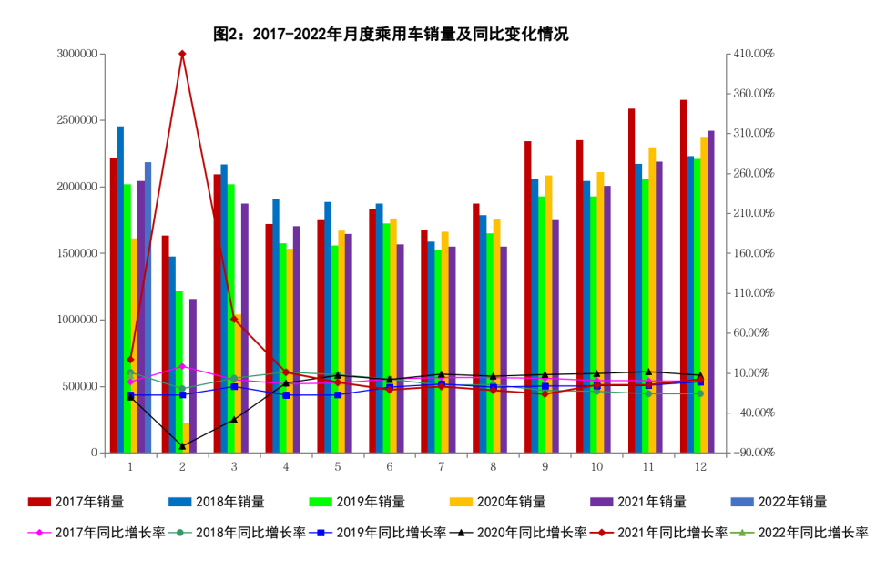 2月,乘用车产销分别完成153.4万辆和148.7万辆,同比分别增长32.0%27.8%。分车型看,轿车产销分别完成70.4万辆和68.7万辆,同比分别增长29.6%28.4%SUV产销分别完成75.6万辆和73.4万辆,同比分别增长36.6%29.6%MPV生产完成4.9万辆,同比下降1.0%,销售完成5.2万辆,同比增长12.9%;交叉型乘用车生产完成2.6万辆,同比增长54.6%,销售完成1.5万辆,同比下降9.5%