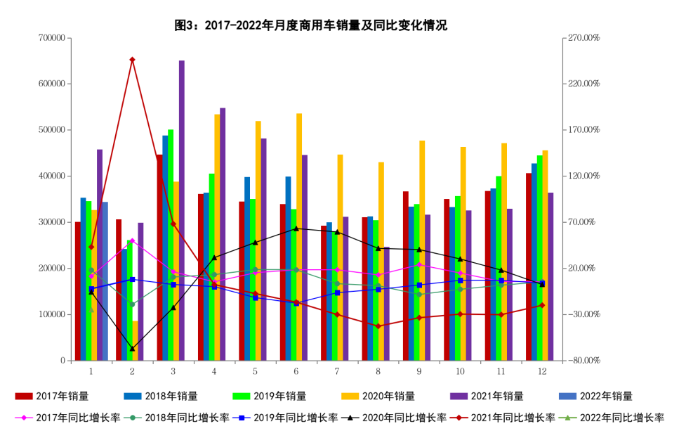 2月,商用车产销分别完成27.9万辆和25.0万辆,同比分别下降18.3%16.6%。分车型看,货车产销分别完成25.4万辆和22.7万辆,同比分别下降19.4%17.8%;客车产销分别完成2.5万辆和2.3万辆,同比分别下降5.3%3.6%