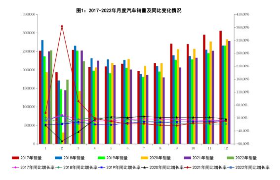 2022年3月,受新冠肺炎疫情、芯片供应短缺等因素影响,我国汽车产销同比分别下降9.1%和11.7%。新能源汽车销量继续保持高速增长,市场渗透率达21.7%。